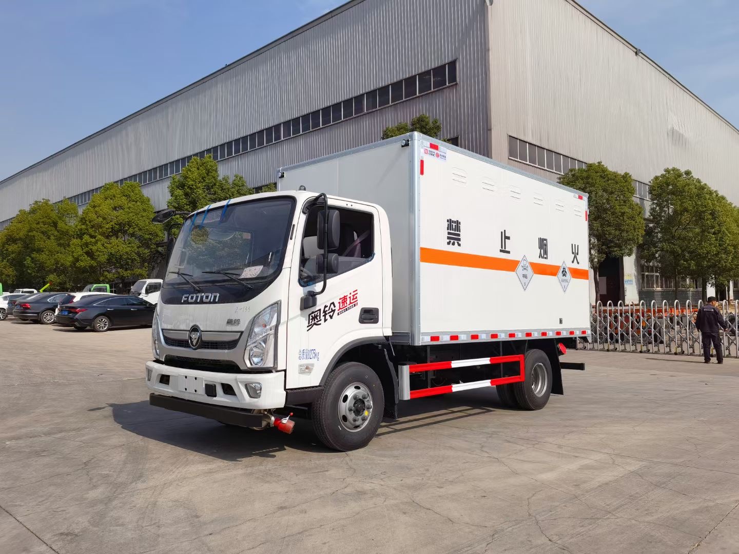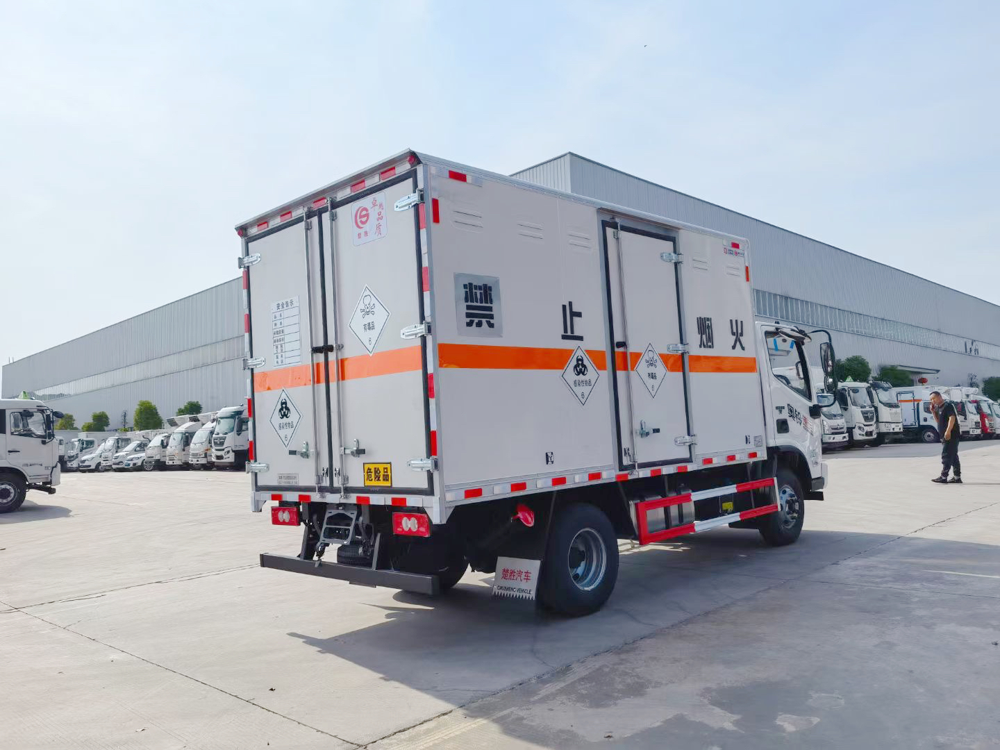 嚴(yán)格按照公告尺寸制作。外板采用烤漆板帶透氣孔,內(nèi)飾為導(dǎo)電性能良好的鋁平板有透氣孔,矩形骨架結(jié)構(gòu)內(nèi)部填充防火阻燃材料,復(fù)合加鉚合工藝。廂體四周鋁合金包邊及包角,車(chē)廂底板鋪設(shè)防靜電膠皮,廂體前臉50公分高鋪設(shè)防靜電膠皮。后部設(shè)置對(duì)開(kāi)門(mén),右側(cè)單開(kāi)門(mén),廂體內(nèi)部?jī)蓚?cè)安裝捆綁貨物的臥環(huán)。廂體內(nèi)部安裝煙霧報(bào)**器及防盜報(bào)**感應(yīng)器。車(chē)廂一周粘貼橙色反光帶,箱體粘貼 菱形標(biāo)志牌,安全告示牌,危險(xiǎn)品牌,箱體安裝示廓燈(前白后紅),拖地靜電帶。